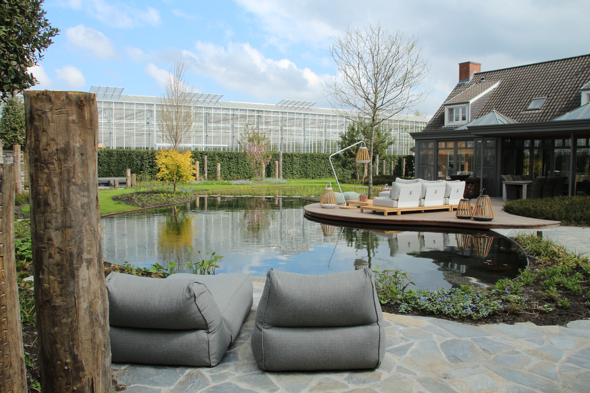 In dit exclusieve project vloeien luxe en natuur naadloos in elkaar over door het gebruik van organische, natuurlijke lijnen. Centraal in de tuin ligt een kristalheldere zwemvijver, die wordt geflankeerd door robuuste paden van authentieke flagstones.